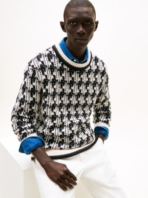 Get into the festive mood with this jumper, knitted in a contrasting houndstooth check with a chunky texture for a standout look.